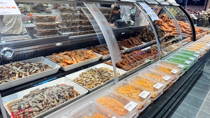 此次調(diào)改,門店將加工板塊營(yíng)業(yè)面積擴(kuò)大至370平方米,采用“明檔結(jié)合明廚亮灶”的設(shè)計(jì),讓顧客可以直觀看到加工間的操作全過程。新增手工制作灌腸、現(xiàn)場(chǎng)煎炸魚類、烤披薩、壽司等多個(gè)品類。