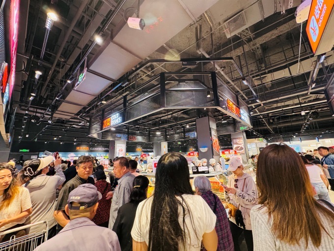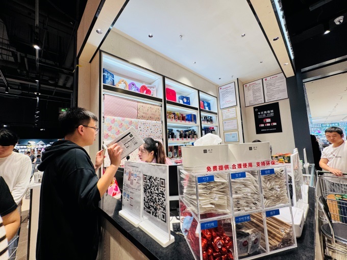 賣場環(huán)境經(jīng)過全面優(yōu)化,取消強制動線,主通道大幅拓寬,貨架高度統(tǒng)一降至1.6米,層數(shù)精簡至5-6層,整體空間更通透、購物更便捷。細節(jié)服務處處體現(xiàn)溫度:食品貨架旁配置放大鏡,方便老年顧客閱讀商品信息;連卷袋配備濕手器,解決手濕難撕袋的困擾;果切組合按甜度標明食用順序;購買整個西瓜、榴蓮、鳳梨等水果可享受免費現(xiàn)切服務;冷鏈區(qū)域配備防凍手套,榴蓮區(qū)放置防刺手套,貼心呵護顧客體驗。