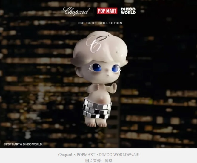 蕭邦與泡泡瑪特聯(lián)合推出三款限量版DIMOO公仔,該單品僅向在線下精品店購買Ice Cube系列珠寶的品牌會員開放。