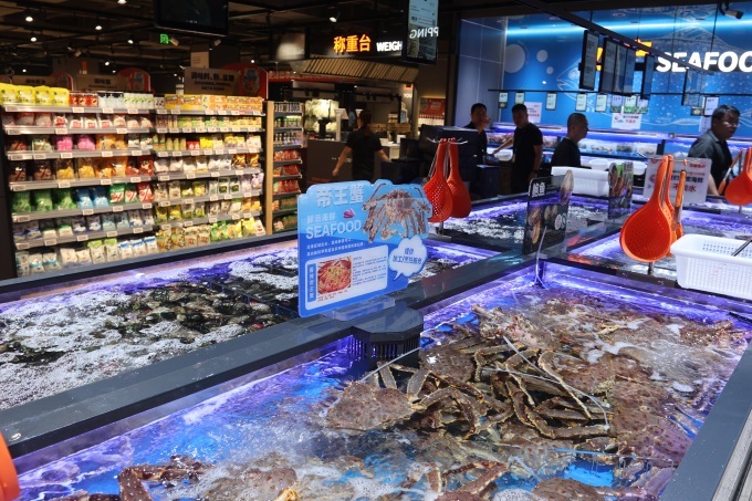 水產(chǎn)類(lèi)主推佩戴官方溯源蟹扣、保真;畋r(jià)的陽(yáng)澄湖大閘蟹,以及源自挪威純凈深海、確保E+級(jí)高品質(zhì)的冰鮮三文魚(yú),為中秋家宴提供上佳之選。