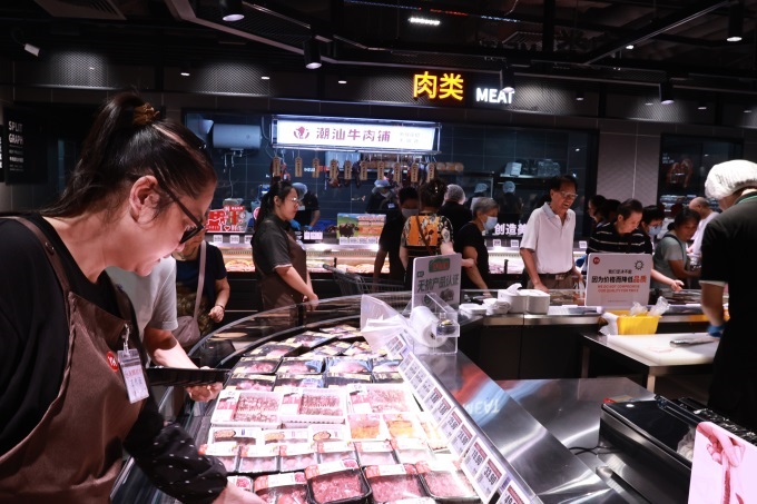 此外,門(mén)店重點(diǎn)引入了穗香雞、廣州江村黃雞、廣西巴馬香豬等嶺南地標(biāo)性禽肉產(chǎn)品,并備有高端進(jìn)口和牛,為顧客的餐桌提供更多元、更優(yōu)質(zhì)的選擇。