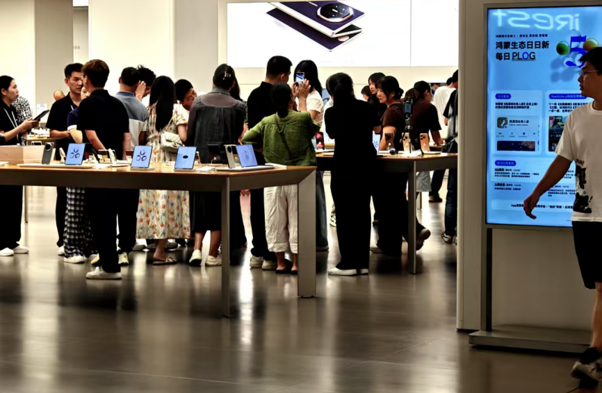 “華為Pura80 系列和華為Mate X6,至高可享2000元優(yōu)惠!币蝗A為智能生活館店員稱(chēng)。國(guó)慶期間,該門(mén)店人頭攢動(dòng),消費(fèi)者擠滿(mǎn)了多個(gè)展臺(tái),圍著體驗(yàn)各項(xiàng)新功能。