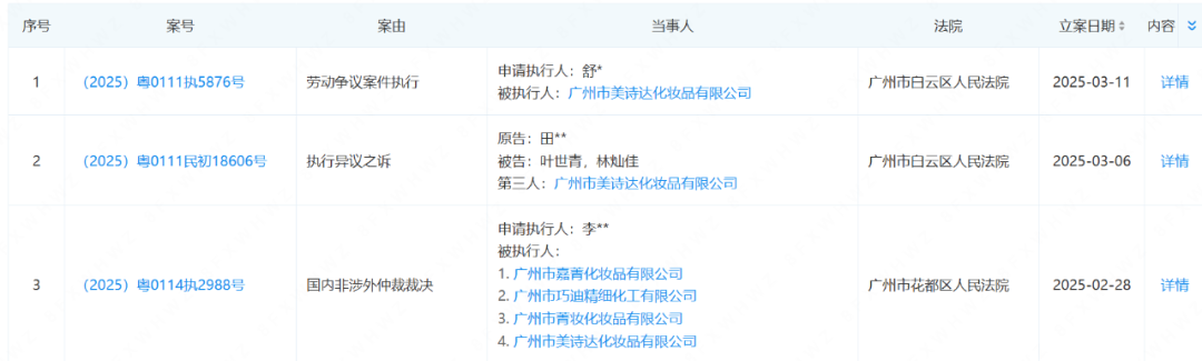 2023年至2025年期間,廣州美詩(shī)達(dá)9次被廣州市天河區(qū)人民法院及廣州市白云區(qū)人民法院列為失信被執(zhí)行人,涉案總金額為82.34萬元, 被執(zhí)行總金額達(dá)1754.27萬元,其法人葉漢坤11次被限制高消費(fèi)。