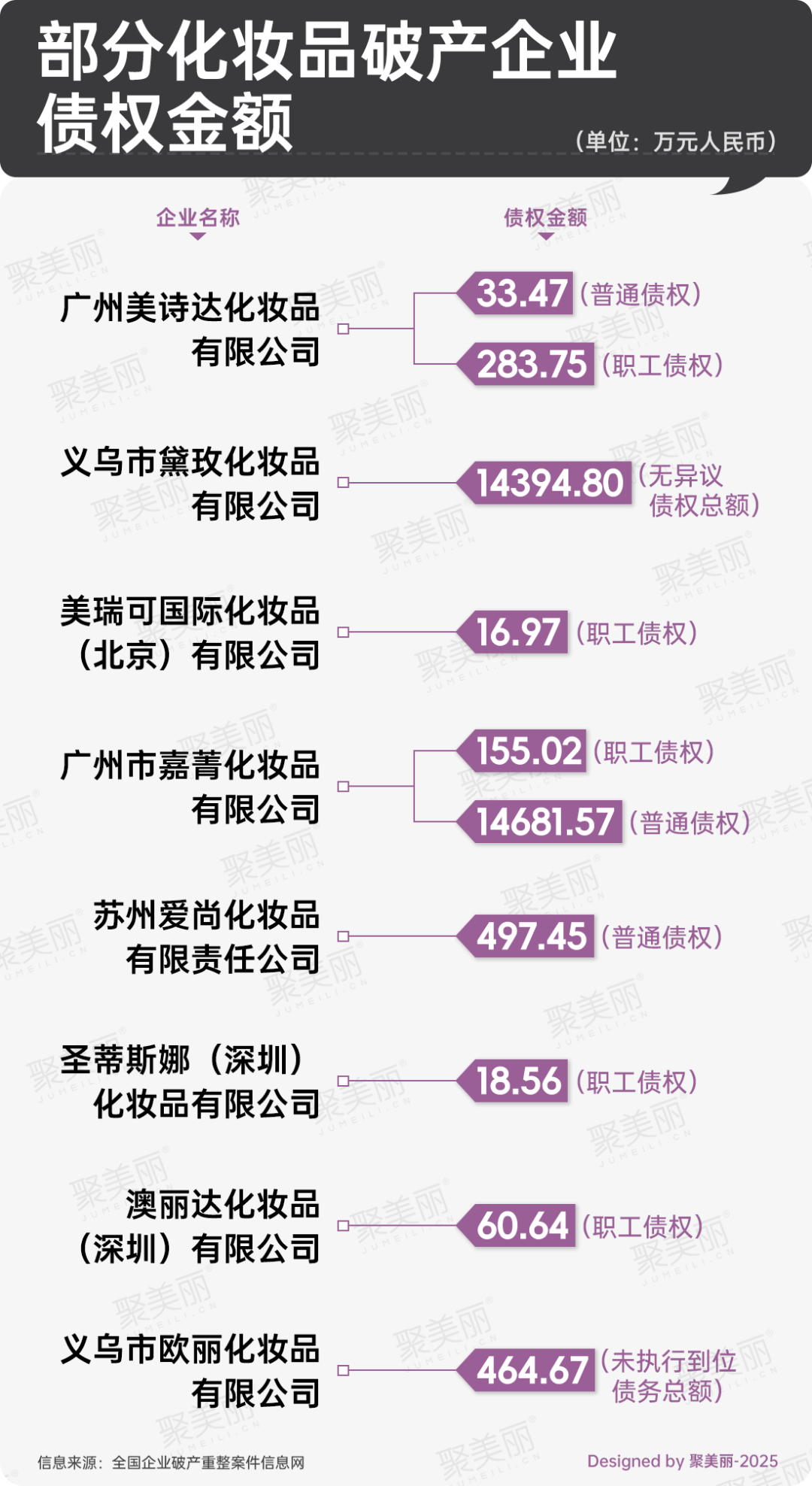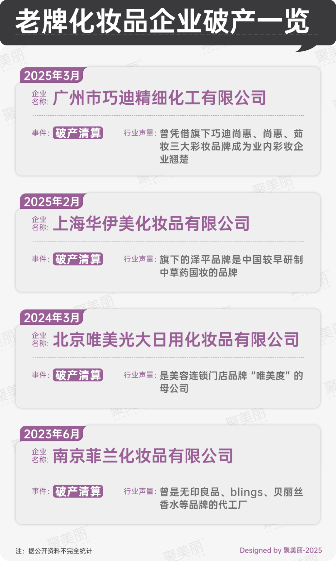 2025年,一大批老牌化妝品企業(yè)在內(nèi)的中小型、小微型企業(yè)正陷負(fù)債、破產(chǎn)清算的生死困局。