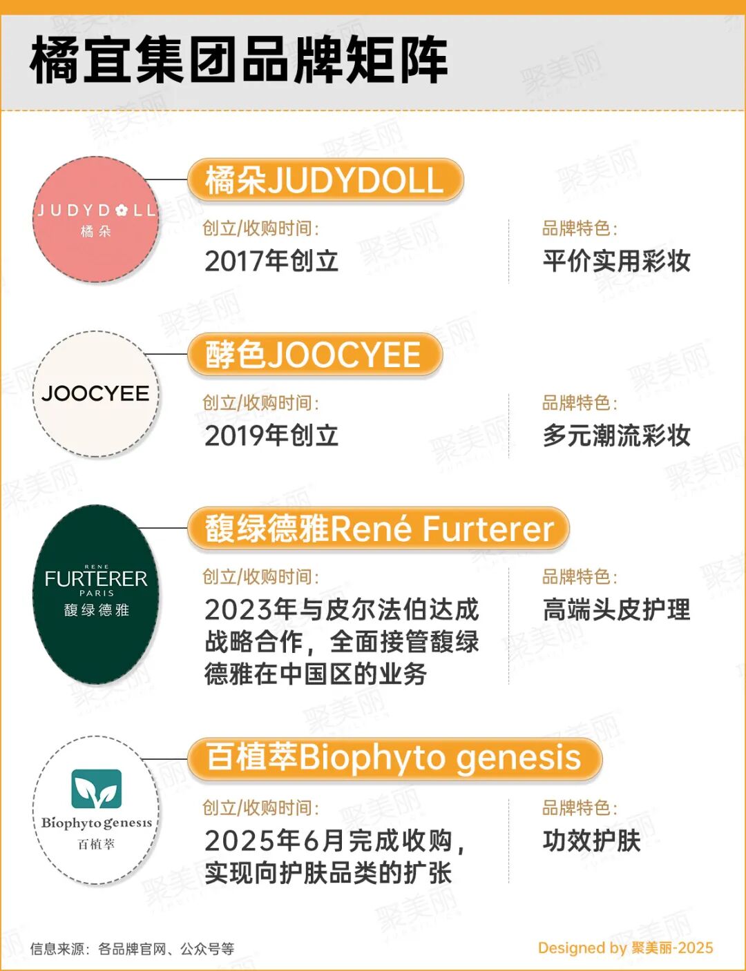 早在去年,橘宜集團(tuán)通過收購皮爾法伯集團(tuán)旗下專業(yè)頭皮護(hù)理品牌“馥綠德雅”中國業(yè)務(wù),涉足洗護(hù)領(lǐng)域;今年6月,其又宣布完成對(duì)功效護(hù)膚品牌百植萃的股權(quán)收購,入局科學(xué)護(hù)膚賽道。至此,橘宜集團(tuán)成功構(gòu)建起“彩妝+洗護(hù)+護(hù)膚”的立體化品牌矩陣。