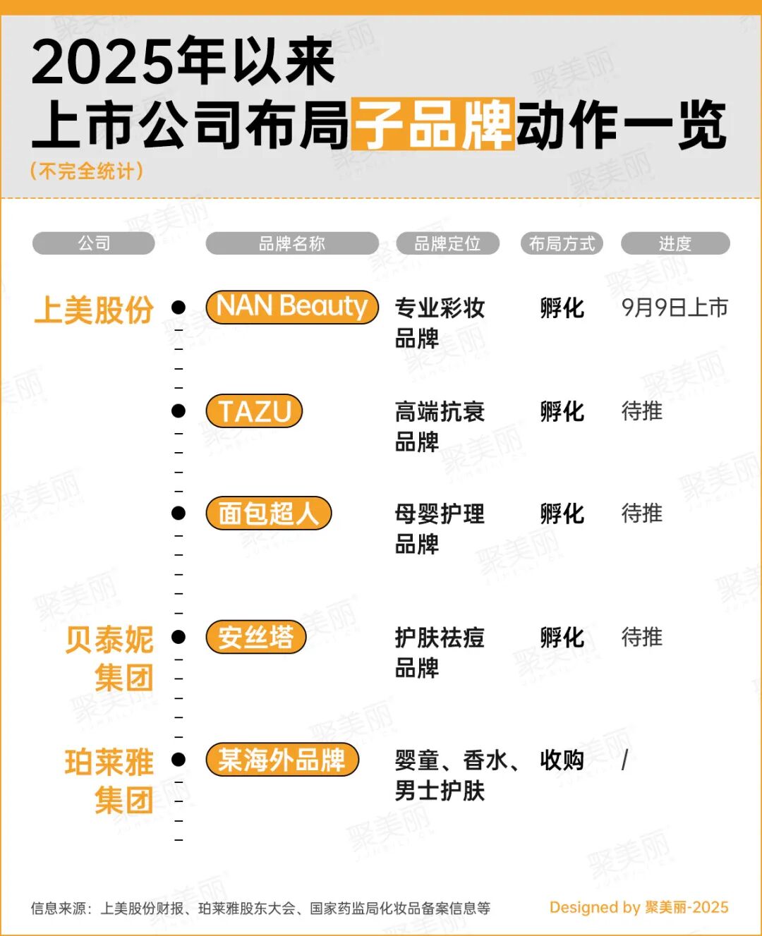 據(jù)聚美麗不完全統(tǒng)計(jì),今年以來,便有3家國貨美妝上市公司,即上美股份、貝泰妮集團(tuán)、珀萊雅集團(tuán),先后宣布其布局子品牌的計(jì)劃。