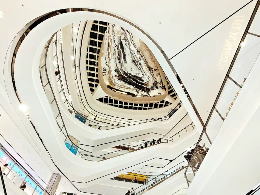 室內(nèi)商場,最大亮點無疑是串聯(lián)南區(qū)與北區(qū)商場的三層高空中連廊,臨街區(qū)一側(cè)是視野開闊的全落地通透玻璃幕墻;設(shè)計方還巧妙運用大挑高設(shè)計,將此處打造為可以舉辦各類大型主題活動的靈感場域「城市客廳Urban Hall」。