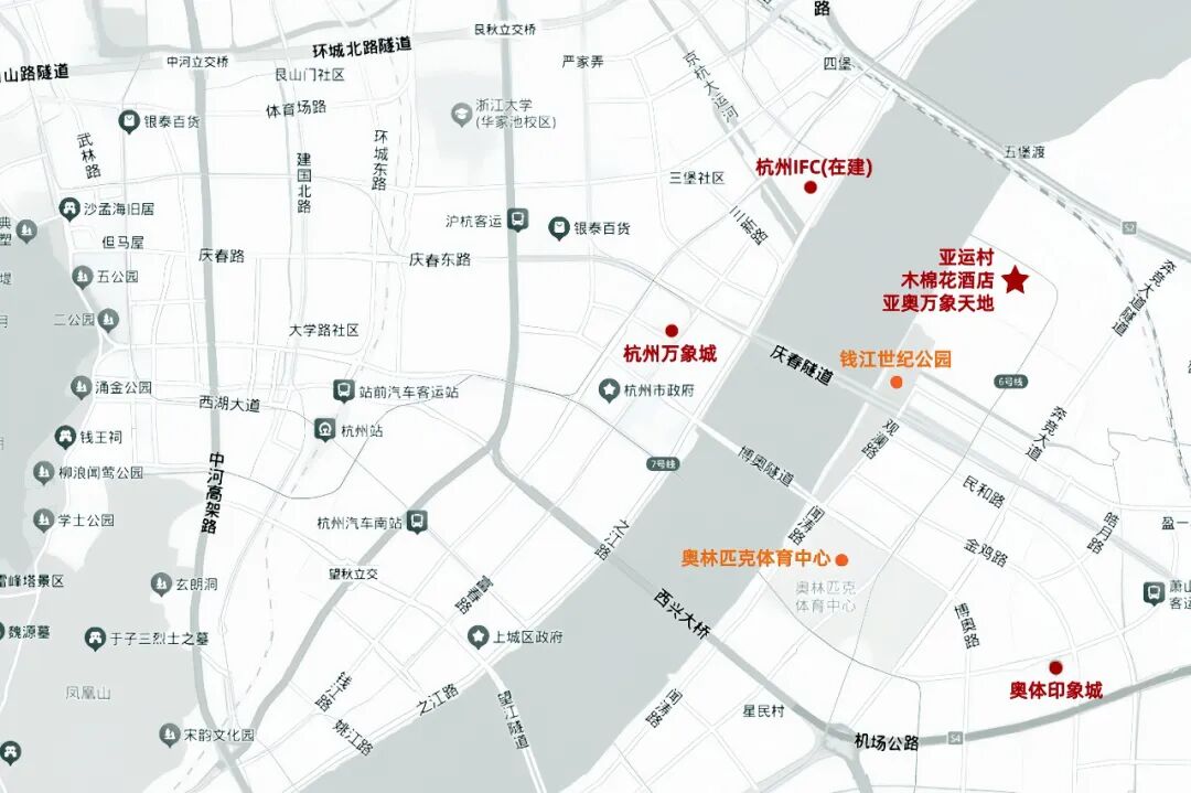 如果我們再把視野擴大,不限于單一項目,而是縱觀亞運村及錢江世紀(jì)城核心區(qū),就會發(fā)現(xiàn)「彌補杭州高品質(zhì)街區(qū)商業(yè)空白」的亞奧萬象天地,并非一直是「孤軍奮戰(zhàn)」。