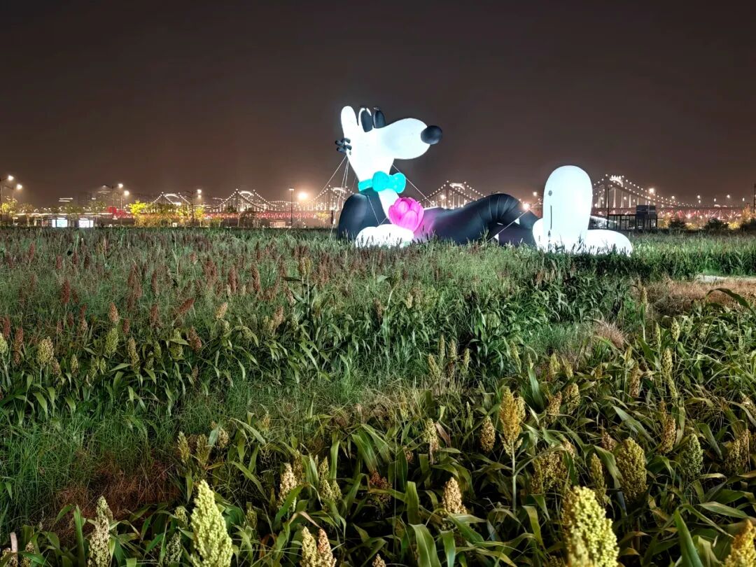 項目往北被彭埠大橋所阻,往東則是「錢江世紀(jì)公園&之江綠道」,相互之間近在咫尺卻被大片無道路連通的農(nóng)田「物理分割」;而本次藝術(shù)展中的Mello形象,也只能孤零零坐于旁人無法靠近的農(nóng)田中。