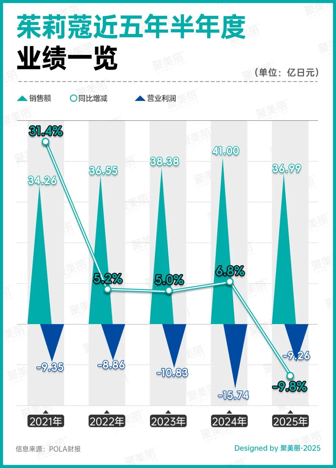 茱莉蔻的發(fā)展停滯或許與其母公司POLA ORBIS集團(tuán)息息相關(guān)。2025上半年,POLA ORBIS集團(tuán)美容護(hù)理業(yè)務(wù)的凈銷售額為802億日元(人民幣約37.34億元),同比下降1.4%,營業(yè)利潤(rùn)微增2.2%至80.64億日元(人民幣約3.76億元)。