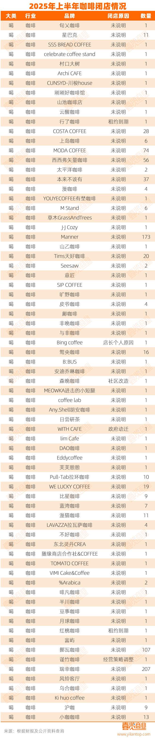 咖啡行業(yè)略好于茶飲行業(yè),上半年關(guān)閉了885家門店。