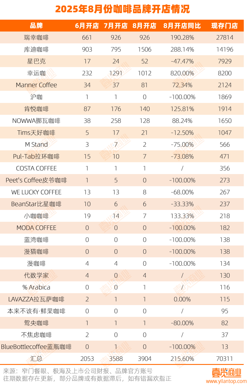 壹覽商業(yè)數(shù)據(jù)顯示,小咖咖啡6、7、8三個月分別開店19家、14家、7家,截至2025年8月底全國范圍擁有門店218家。