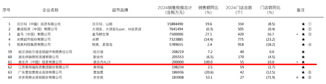 圖源:CCFA“2024年中國超市TOP100”榜單