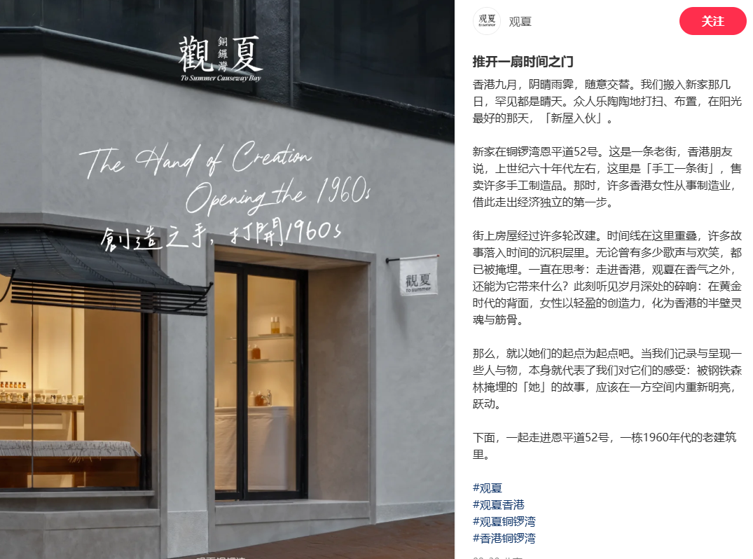 剛剛過去的9月份,國產(chǎn)香氛品牌觀夏在香港銅鑼灣開設(shè)了大陸之外的第一家門店。
