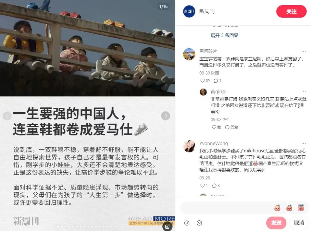 在社交媒體平臺(tái),關(guān)于泰蘭尼斯的負(fù)面討論越來(lái)越多,主要集中在“鞋底打滑”“價(jià)格過(guò)高”“性?xún)r(jià)比不高”等內(nèi)容。