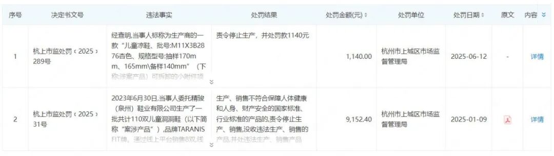 企查查信息顯示,2025年1月與6月,泰蘭尼斯因“以不合格品冒充合格品行為”“生產(chǎn)、銷(xiāo)售不符合保障人體健康和人身、財(cái)產(chǎn)安全的國(guó)家標(biāo)準(zhǔn)、行業(yè)標(biāo)準(zhǔn)的產(chǎn)品”,先后兩次被杭州市上城區(qū)市場(chǎng)監(jiān)督管理局行政處罰。具體違規(guī)細(xì)節(jié)雖未完全公開(kāi),但處罰依據(jù)直指產(chǎn)品質(zhì)量問(wèn)題。