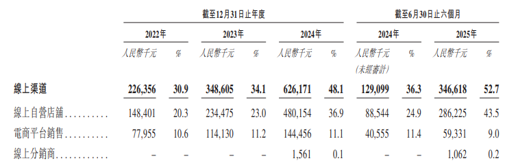 為加強宣傳攻勢,坦博爾還逐漸加碼線上營銷。根據(jù)招股書披露數(shù)據(jù),2022-2025年上半年,坦博爾分別建立并運營了28家、47家、89家及100家線上自營店鋪,規(guī)模增長迅猛。
