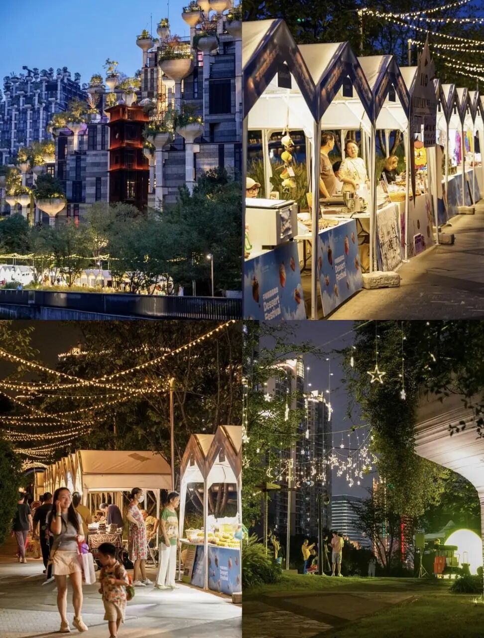 上海蘇州河公園一直以來都是市民游客的散步游覽的熱點之一,這個國慶,上海普陀區(qū)借助“蘇河夜游”的熱點,推出蘇河市集,匯聚了餐飲、文創(chuàng)、零食、潮玩四大品類,9輛特色餐車與15個集市攤位沿河岸線排開。除了逛市集,游客還能乘坐游船,游覽蘇河夜景,觀賞音樂表演。