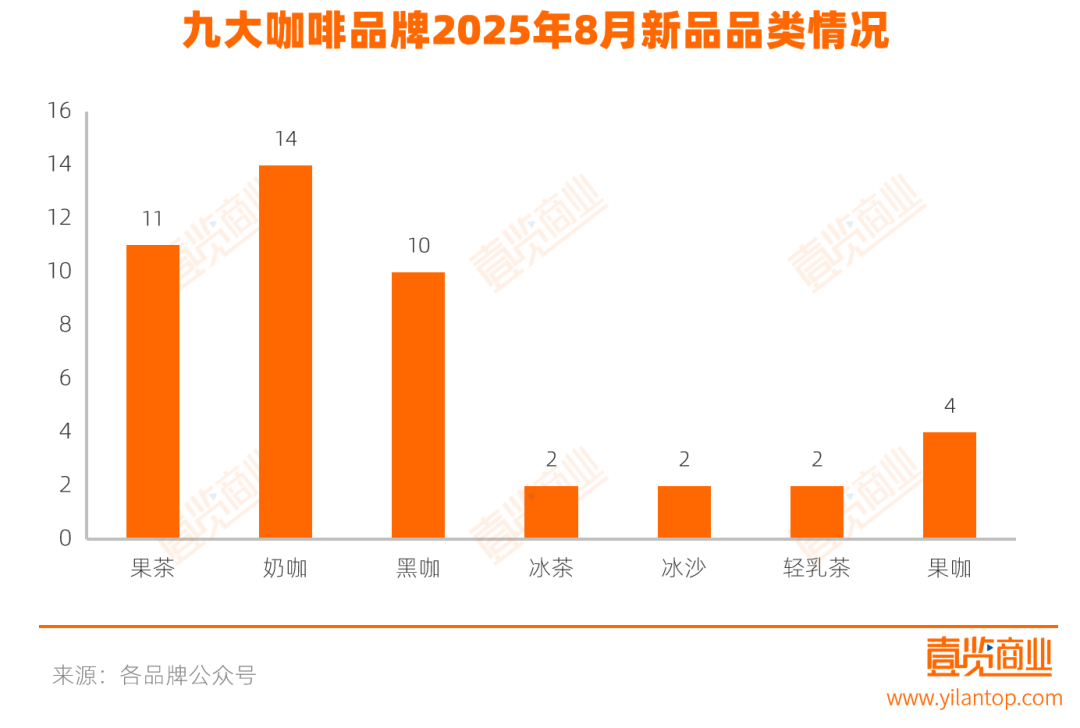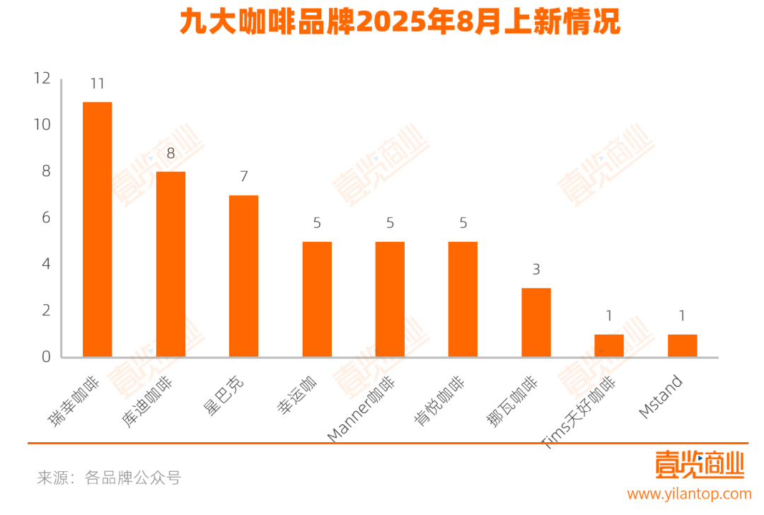 據(jù)茶咖觀察統(tǒng)計(jì),今年8月,全國(guó)門店數(shù)量TOP10的咖啡品牌共推出了46款新品,平均每日上新1.5款產(chǎn)品。