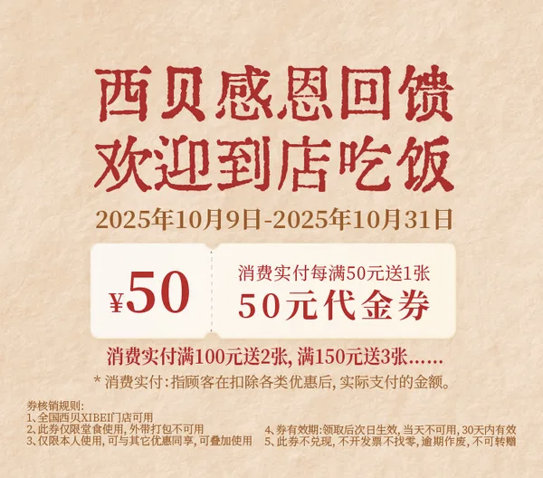 西貝代金券 來源:網(wǎng)絡(luò)