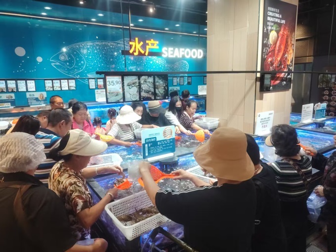 服務(wù)品質(zhì)同步躍升,肉禽柜臺(tái)提供個(gè)性化加工服務(wù),切絲、切片、絞肉、剝皮等服務(wù)一應(yīng)俱全;海鮮區(qū)域針對(duì)高端品類推出清洗、打氧等增值服務(wù),讓顧客享受從選購(gòu)到處理的全流程便利。