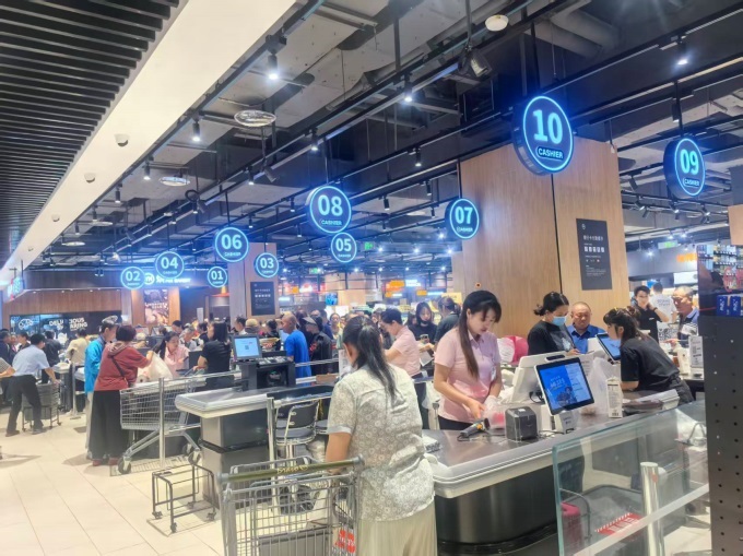 調(diào)改后的門店迎來全面升級(jí),賣場(chǎng)環(huán)境與服務(wù)體驗(yàn)也實(shí)現(xiàn)了顯著提升。超市取消了傳統(tǒng)的強(qiáng)制動(dòng)線,讓顧客購(gòu)物路徑更為自由靈活;主通道大幅拓寬至3米,營(yíng)造出開闊舒適的購(gòu)物空間。貨架設(shè)計(jì)更注重人性化體驗(yàn)——中島貨架高度統(tǒng)一從原來的2-2.4米降至1.6米,層數(shù)也精簡(jiǎn)至5-6層,令視野通透、取物便捷,營(yíng)造出輕松自在的“逛街感”。