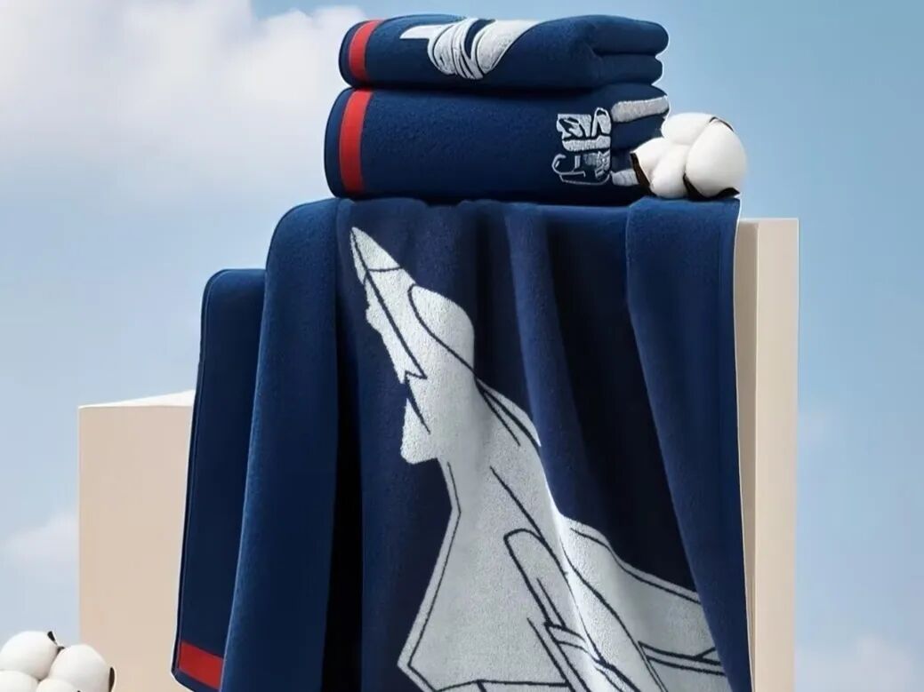 第一眼以為是航模,仔細一看竟是文創(chuàng)毛巾。天虹自有品牌菲爾芙參評的J-20毛巾禮盒,吸引了必維國際檢驗集團技術開發(fā)經理、評審官張鳳鴻的注意。他表示:“這款商品體現(xiàn)了愛國情懷,在克重、針織手法和配色選擇上都十分用心。