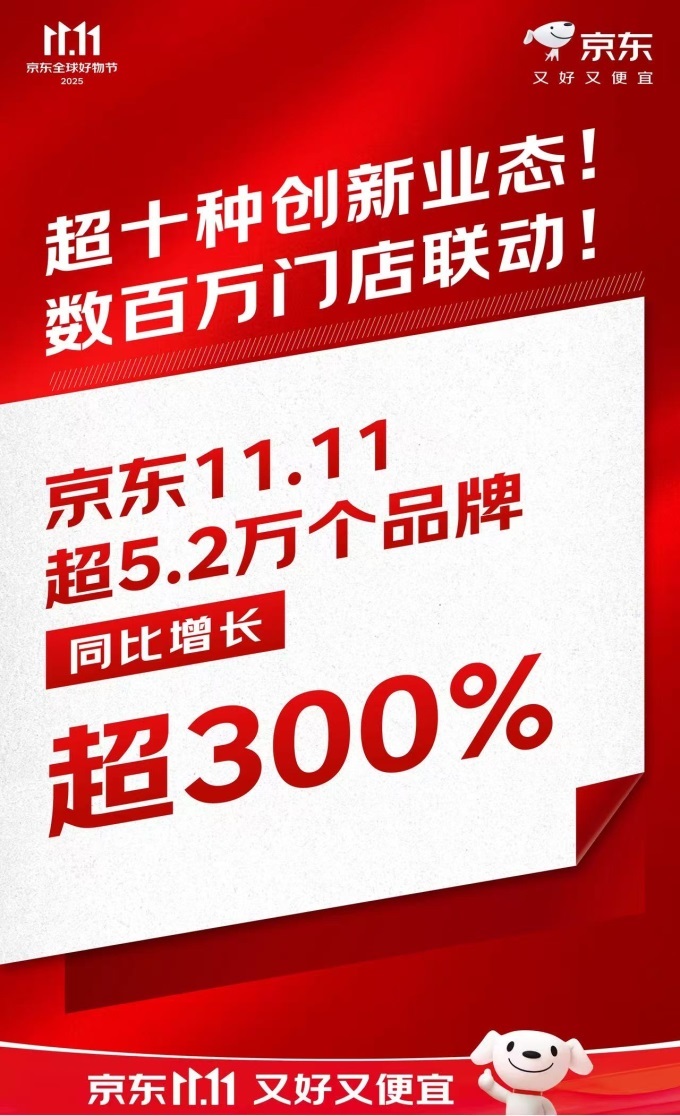 京東11.11超5.2萬(wàn)個(gè)品牌同比增長(zhǎng)超300%