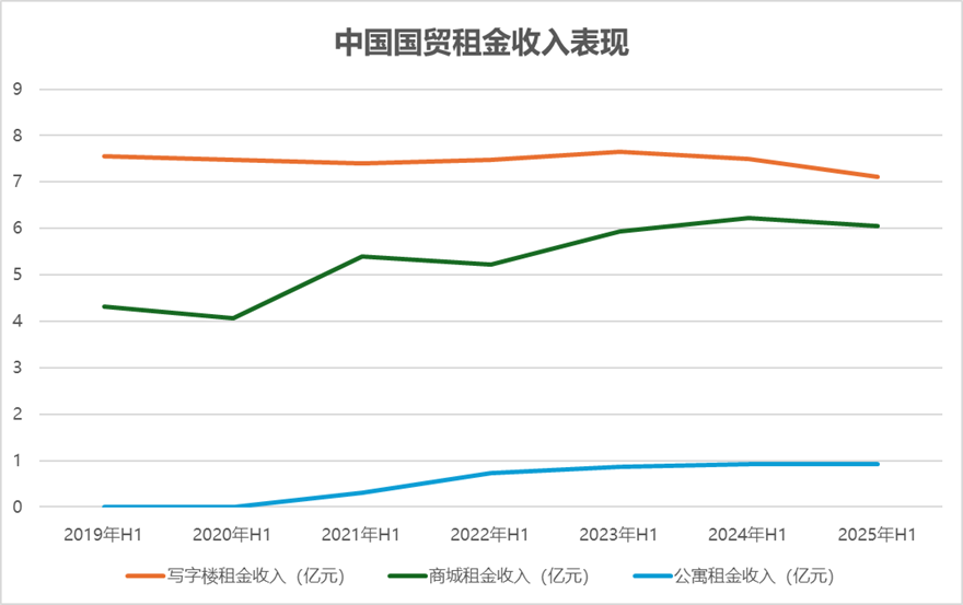 從具體的經(jīng)營(yíng)層面來看,自從國(guó)貿(mào)三期在2019年完全啟用以來,其寫字樓租金收入在今年上半年創(chuàng)下近七年的新低。