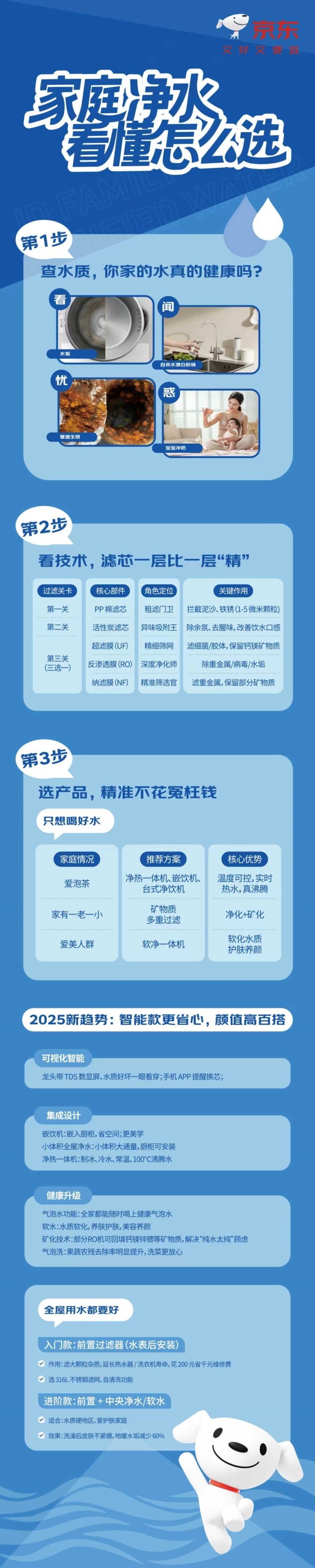 近日,京東MALL、京東電器發(fā)布家庭凈水產品選購攻略,針對 “不知水質、不懂技術、盲目選品” 三大核心痛點精準給出解決方案,手把手教你如何正確選購凈水器,并同步開啟的11.11凈水節(jié),讓 “科學選機” 不再是家庭難題。