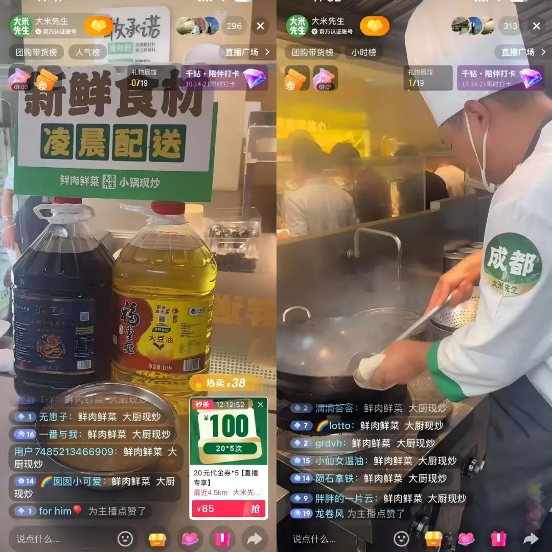 “我們的牛肉、梅花肉都很新鮮,家里用的是什么調(diào)料,我們就用什么調(diào)料,隔夜飯不可能出現(xiàn)!痹诖竺紫壬亩兑糁辈ラg內(nèi),主播一邊展示著自家的“明廚亮灶”,另一邊BGM是鍋鏟與鍋碰撞出的“鐺鐺”聲。
