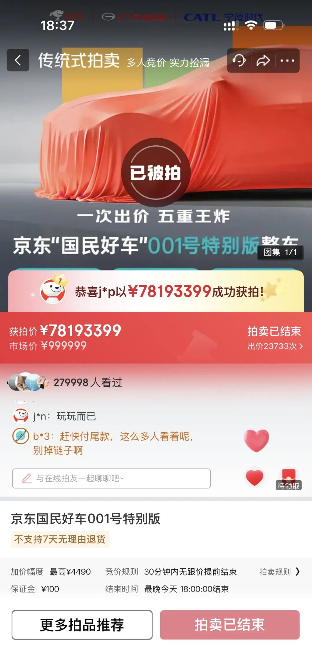 京東“國(guó)民好車”拍賣,神秘人物出價(jià)7819萬(wàn)