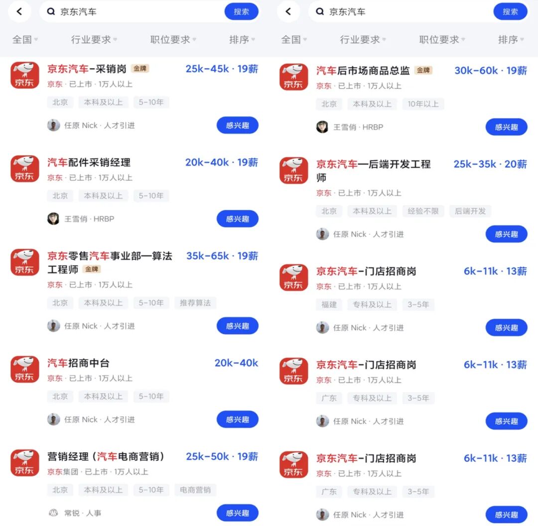 在新車信息密集曝光的同時(shí),時(shí)代財(cái)經(jīng)注意到,京東汽車近期在人才招募上也有大動(dòng)作。