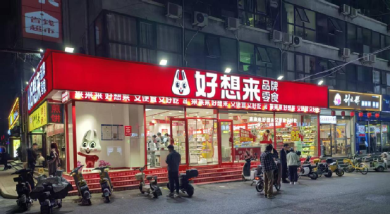 對于消費者而言,量販零食總是打著“為大家省錢”的口號,將部分大包裝產(chǎn)品“拆開賣,按斤稱”。同時在線下,用大紅色或亮黃色的門店裝修,快速吸引人們的注意。就算是在黑天更早的北方市場,以好想來、趙一鳴零食為代表的量販零食品牌,也往往從8點營業(yè)至23點,甚至是24小時“超長待機”。