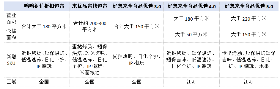 另一邊的鳴鳴很忙,也在今年2月推出了兩大自有品牌系列產(chǎn)品——主打質(zhì)價比的紅標、與高質(zhì)量的金標。不久前,鳴鳴很忙還推出了3.0店型,新增了日化、文具、鮮食等多品類,致力于打造“一站式的硬折扣超市”。