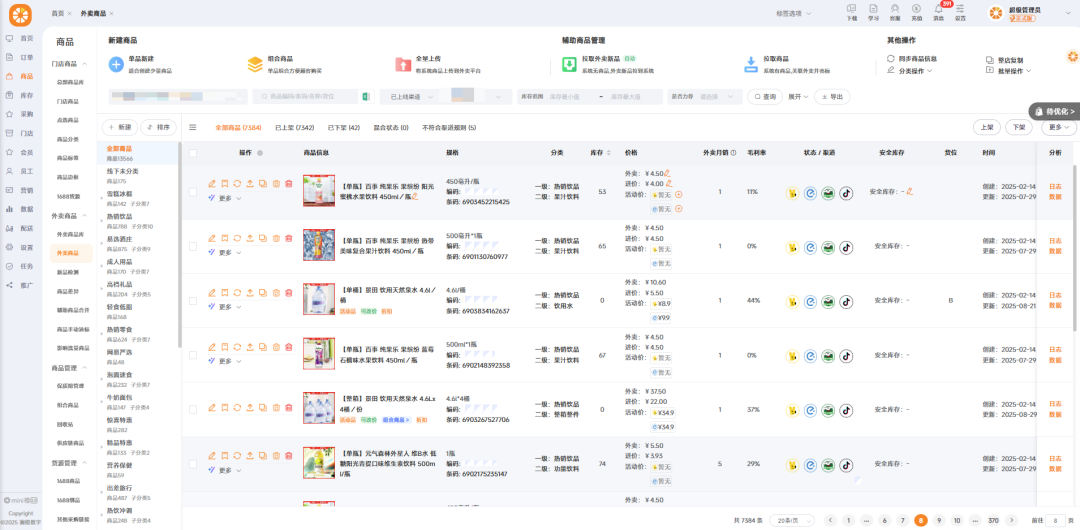 首先,mini橙系統(tǒng)能夠?qū)佣鄠外賣平臺,實現(xiàn)多平臺商品信息統(tǒng)一管理,比如我們將現(xiàn)有的美團店鋪商品全量復制到了餓了么店鋪,還可以在系統(tǒng)創(chuàng)建和修改商品信息同步到所有的外賣平臺。
