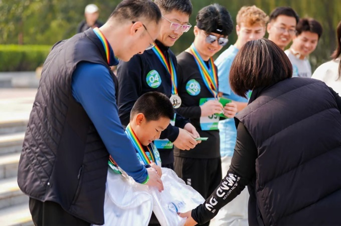 在開場熱身環(huán)節(jié),200多名參與者共同跳起搏擊操熱身,從5歲的孩童到外國友人都一起跟著教練的節(jié)奏揮拳、踢腿,活力滿滿的動作瞬間點燃現(xiàn)場氛圍。隨著發(fā)令信號響起,選手們有序出發(fā),不少女性參賽者搭配松山小暖羊保暖打底褲,在跑道上形成一道兼具活力與溫暖的風(fēng)景線。提前完賽的選手還可參與涵蓋趣味障礙賽、跳繩挑戰(zhàn)等多個項目的“闖關(guān)”游戲互動,并領(lǐng)取小禮品,選手們積極參與,現(xiàn)場歡聲笑語不斷。