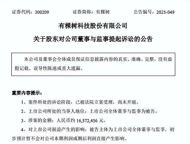 有棵樹方面同時(shí)稱,在此控制權(quán)變動(dòng)及管理層交接的特殊時(shí)期,公司仍存在資產(chǎn)流失、業(yè)務(wù)中斷、財(cái)務(wù)混亂及核心數(shù)據(jù)泄露的潛在風(fēng)險(xiǎn),必須通過強(qiáng)有力的統(tǒng)一管控予以防范。目前已經(jīng)向前實(shí)控人、前董事和高管等發(fā)送移交函,若5日內(nèi)拒不移交,將立即啟動(dòng)司法程序。
