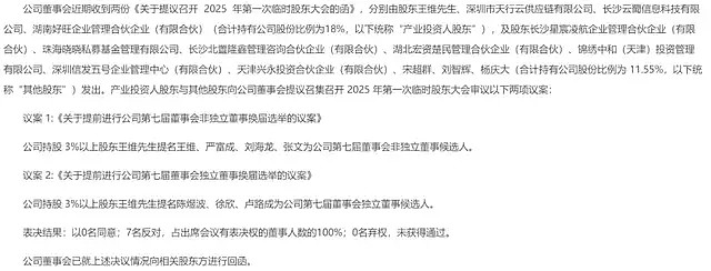 6月,長沙星宸凌航企業(yè)管理合伙企業(yè)(有限合伙)等股東提交股東大會(huì)臨時(shí)提案,再提董事改選,甚至有單獨(dú)股東提出“罷免全體董事”的激進(jìn)提案,均被董事會(huì)以“不符合相關(guān)規(guī)定”為由駁回。