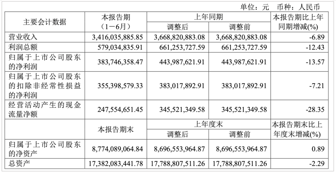 8月26日,陳德力掌舵大商股份后的首份半年報張出——營收、凈利雙雙下滑。數(shù)據(jù)顯示,大商股份今年上半年實現(xiàn)營業(yè)收入34.16 億元,同比下降 6.89%;實現(xiàn)凈利潤 4.23 億元,同比下降12.24%;歸母扣非凈利潤 3.55 億元,同比下降7.21%。