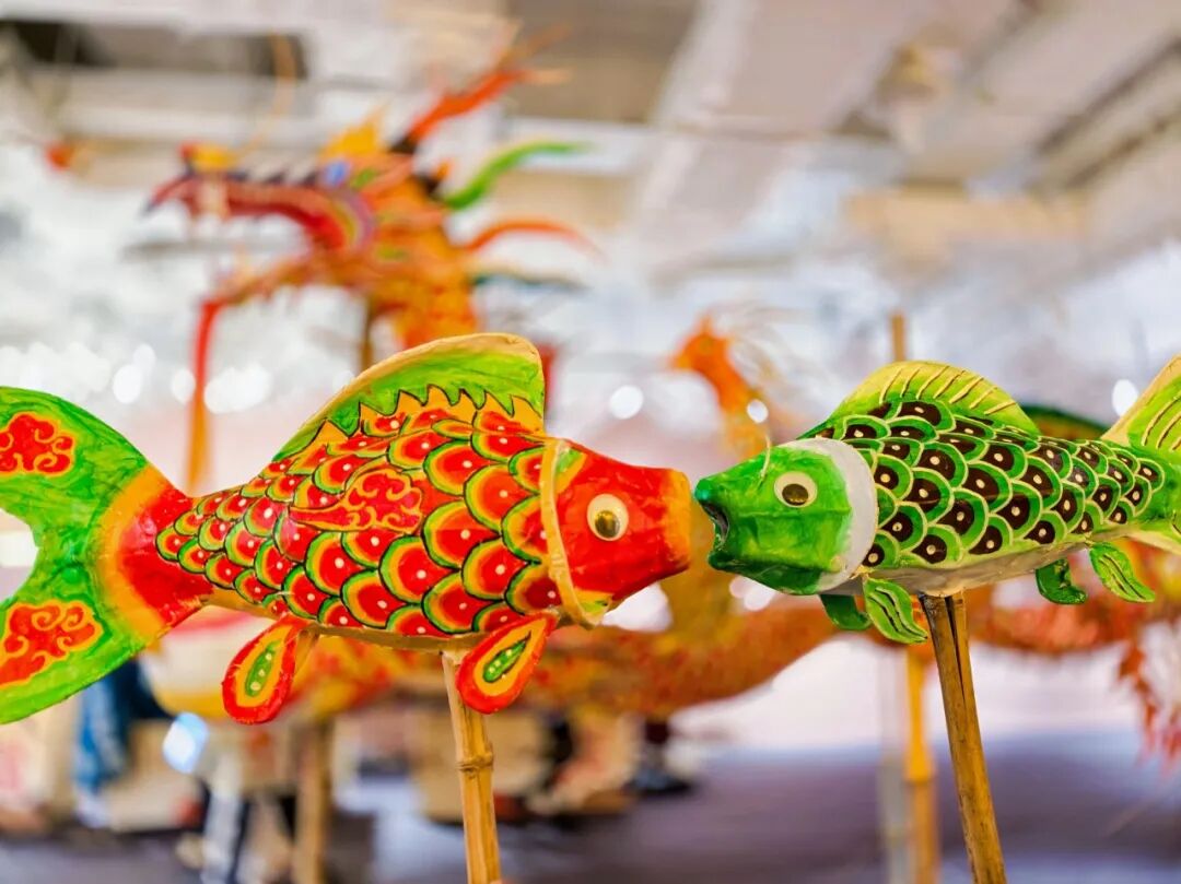 開業(yè)期間,梅州天虹購物中心聯(lián)合梅縣博物館推出“客家非遺藝術展”,通過文物展陳與非遺傳習結合,為顧客打造沉浸式文化體驗。展覽設置百家姓燈籠區(qū)、客家飲食區(qū)、非遺席獅區(qū)、民國服裝區(qū)、豐順浦寨火龍區(qū)五大主題板塊,并聯(lián)動豐順浦寨火龍手藝人共同呈現(xiàn),每日開設非遺課堂,邀請手藝人講解、現(xiàn)場教學。現(xiàn)場另設扎染、竹編主題立體櫥窗,以更直觀的方式傳遞非遺技藝魅力。