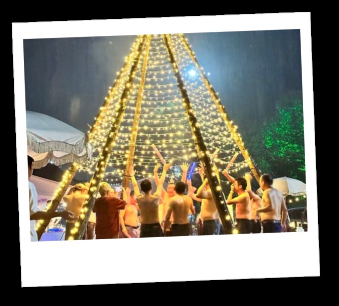 朱文武:我們前一天晚上討論了很多接待方案,因為強哥不在,生怕招待不周。東來哥在我們眼里形象很偉岸,感覺距離很遠。第二天喝酒的時候,我們都不敢過去敬酒,是東來哥主動過來跟我們敬酒,說“玩得開心、快樂”,可我們還是有點放不開。所以,真的要感謝那場雨,雨下來之后,東來哥開始唱歌,我們一個拉一個地跑出去。東來哥率先把衣服脫了,一下子就把整個氛圍帶動起來了。