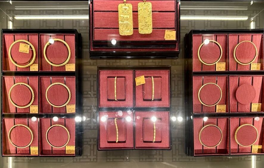 老鋪黃金店內(nèi)的黃金手鐲 來源:網(wǎng)絡(luò)