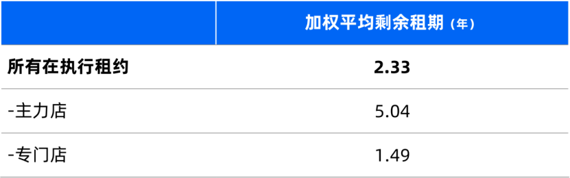 在項(xiàng)目開業(yè)第六年這個(gè)時(shí)間節(jié)點(diǎn)上,即將面臨第二輪大幅調(diào)整,因此當(dāng)下專門店WALE極短,且有高達(dá)30.81%的面積將在今年到期。