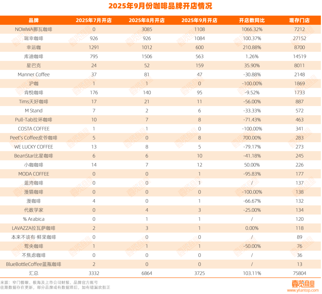 9月,咖啡開店3725家