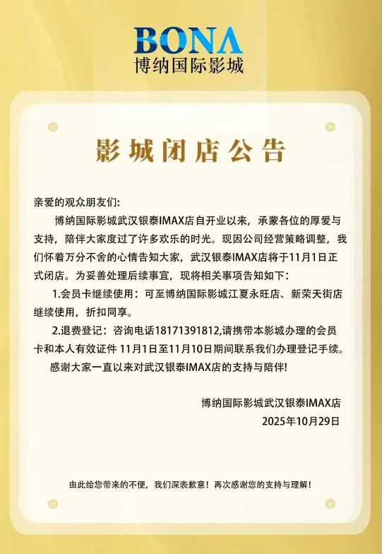 這并不是博納影城一家存在的問題,而是疫情帶來的后遺癥,所有影城都在砍成本,造成體驗效果斷崖式下滑。疫情后,影城行業(yè)陸續(xù)恢復(fù),但低成本運營卻保留下來,整體影城行業(yè)服務(wù)力與高票價不匹配,觀影群體二次培育孵化較難,票房難以堅挺。加上影城簽約時間基本在10-15年,瘋狂期投建的影城硬件設(shè)施老化,基本難以匹配現(xiàn)在的觀影需求,資方看不到盈利希望,所以租約陸續(xù)到期后,一批影城即將關(guān)閉。