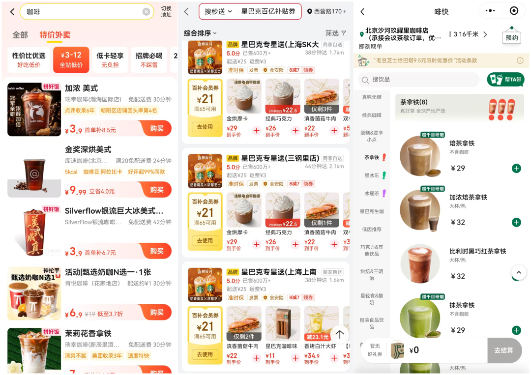 美團(tuán)、京東及星巴克APP產(chǎn)品價格對比