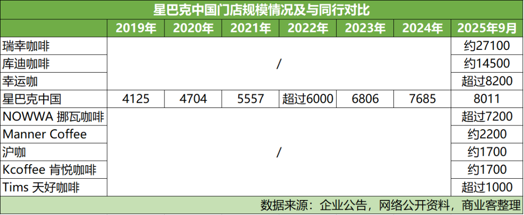 以門店數(shù)量為觀察標(biāo)準(zhǔn),星巴克中國目前排在行業(yè)第四名。