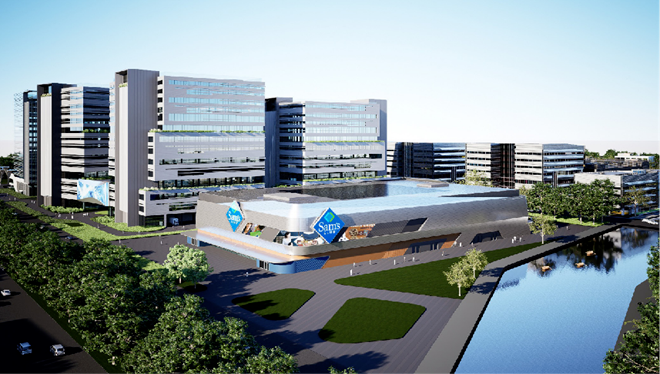 據悉,荔灣山姆位于花地大道南657號的嶺南V谷-廣州國際智能科技園內,項目占地近2萬㎡。其中商業(yè)裙樓面積達1.5萬㎡,擁有9米高的倉儲式購物空間,同時配備了超1000個專用停車位。