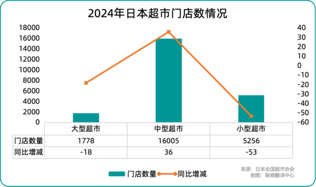 從門店數(shù)量看,超市總數(shù)為23039家,較上年同期凈減少35家。按業(yè)態(tài)與規(guī)模劃分,大型超市主要包括綜合超市與超市中心(SC),共1778家,減少18家;中型超市涵蓋食品超市、食品折扣店及業(yè)務(wù)食品超市,共16005家,增加36家;小型超市則包括小型食品超市、小型食品折扣店與迷你超市,共5256家,減少53家。